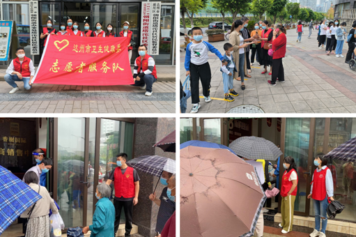 同时,血站组织党员、入党积极分子等志愿者下沉塔沱社区开展各项疫情防控志愿服务活动。血站志愿者们带头布置场地、协助医务人员扫码登记、疏导群众有序排队、为居民群众答疑解惑,深入普及疫情防控相关知识,助力第二轮核酸检测工作安全有序高效开展。在血站志愿者和社区工作者的通力配合下,社区核酸采样工作忙而有序、有条不紊地进行,为疫情防控排除了大量隐患,当好了居民的“贴心人”,一抹鲜亮的“志愿红”汇聚成守护居民“健康绿”的强大力量,筑牢了阻断疫情传播的坚实防线。