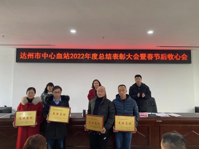 副站长何俊宣读了《中共达州市中心血站支部委员会关于表扬2022年度先进集体(个人)的决定》和《达州市中心血站工会关于表彰2022年度先进个人的决定》。随后,对在2022年度表现优异、成绩突出的4个先进集体和22名先进个人进行了颁奖。