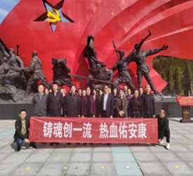 忠魂丰碑永铸巴山,铮铮誓言尽显初心。在万源市红军文化馆,参观了“生死攸关保万源”“不胜不休战万源”“撼天动地壮军史”“万源人民倾力奉献”“忠魂丰碑、永铸巴山”五个展厅,详细了解到万源保卫战有力粉碎了蒋介石集团“围剿”红军的企图,保卫了根据地和红军实力,沉重打击了四川反动军阀势力,开启了大兵团作战获取全胜的先河。同时深刻体会到老一辈无产阶级革命家“智勇坚定、排难创新、团结奋斗、不胜不休”的红军军魂。为缅怀先烈、继承遗志,不忘初心、牢记使命,党员们在高大的石刻党旗下以“铸魂创一流、热血佑安康”的决心重温了入党誓词。